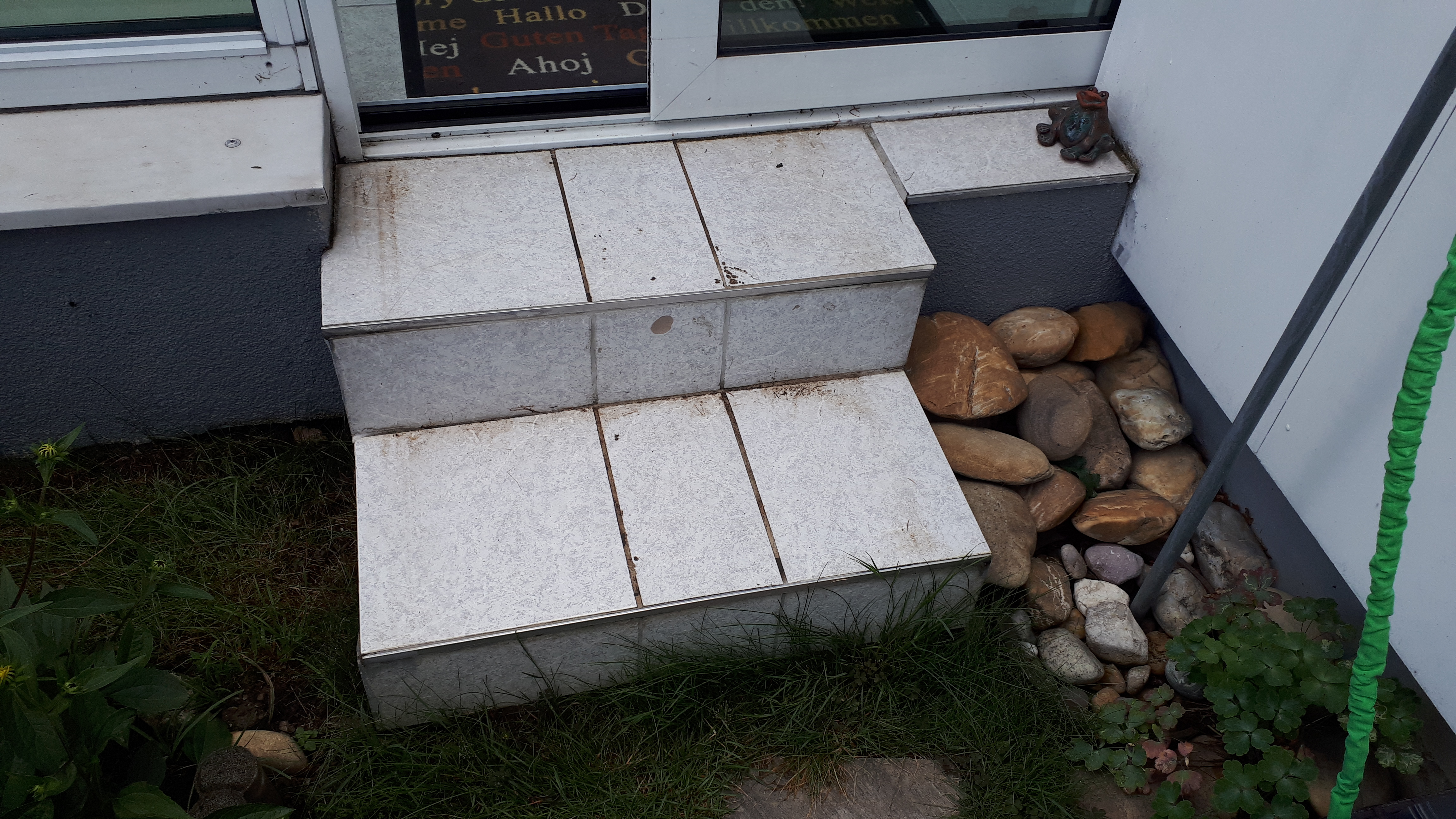 Leistungen: Gesamte Projektorganisation, Beratung, Ausmessen, Planung & Koordination, Angebote, Bestellungen, Beauftragungen & Auftragsfreigaben, diverse Besorgungen, Abbrucharbeiten, Vorbereitung & Verlegung der Steinplatten inkl. Verfugung, Silikonfugen, Sockelanstrich neu, Steinschlichtung-Gartenwasserhahn, Reinigung, Rechnungsprüfungen & Freigaben
