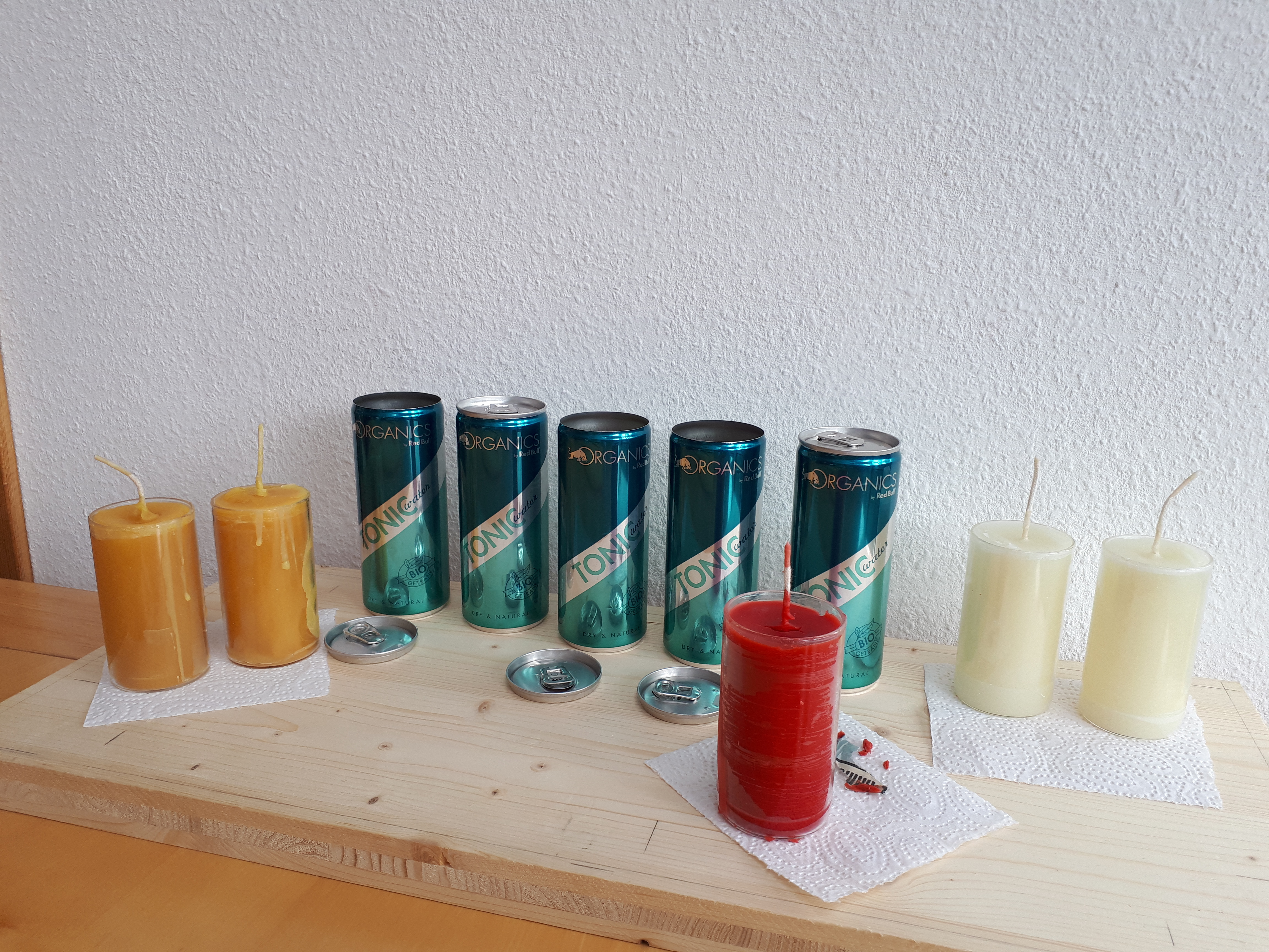 Materialien: Beton, Glas, Bienenwachs, Docht, Kork, recycelte Aludosen