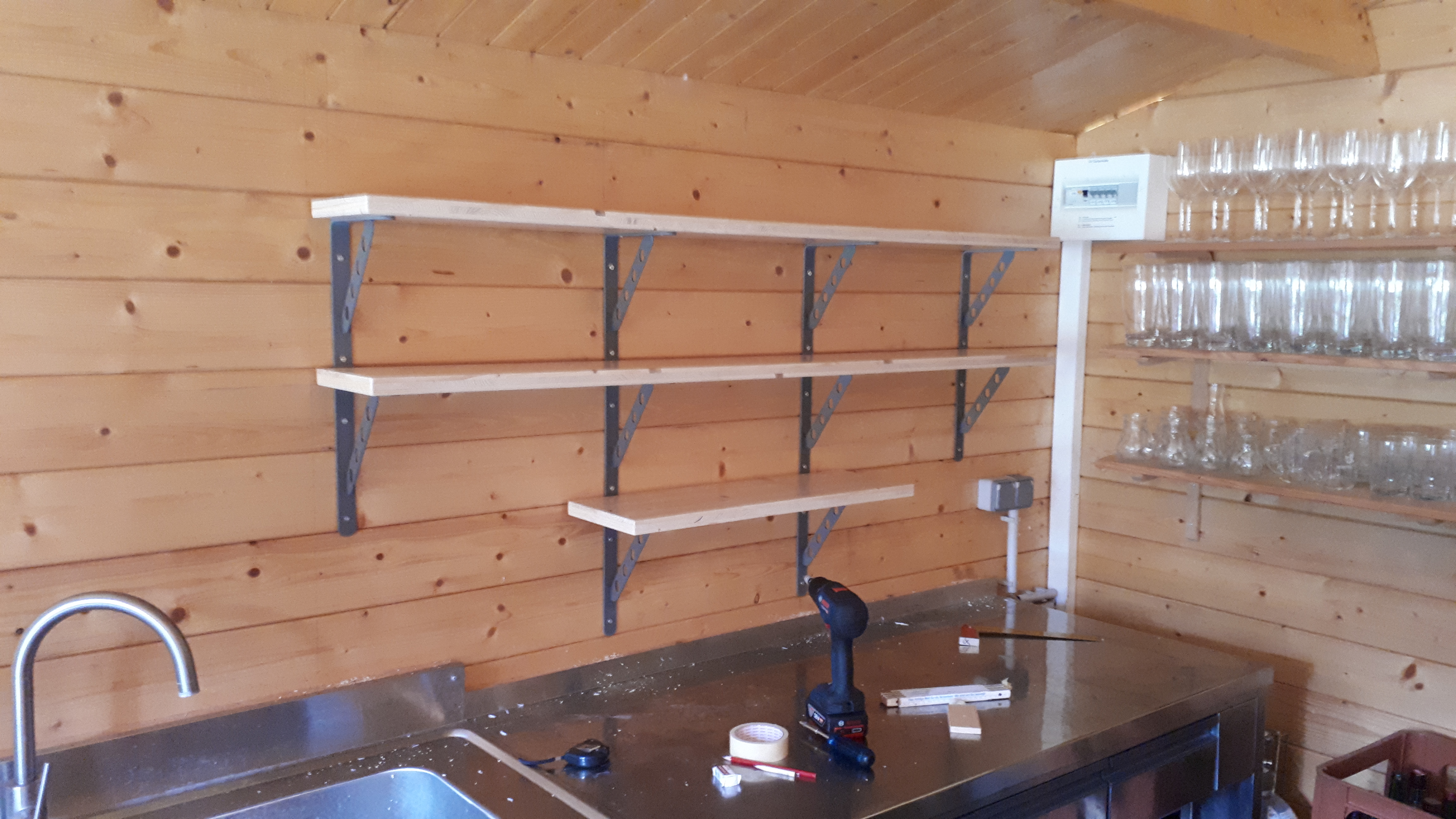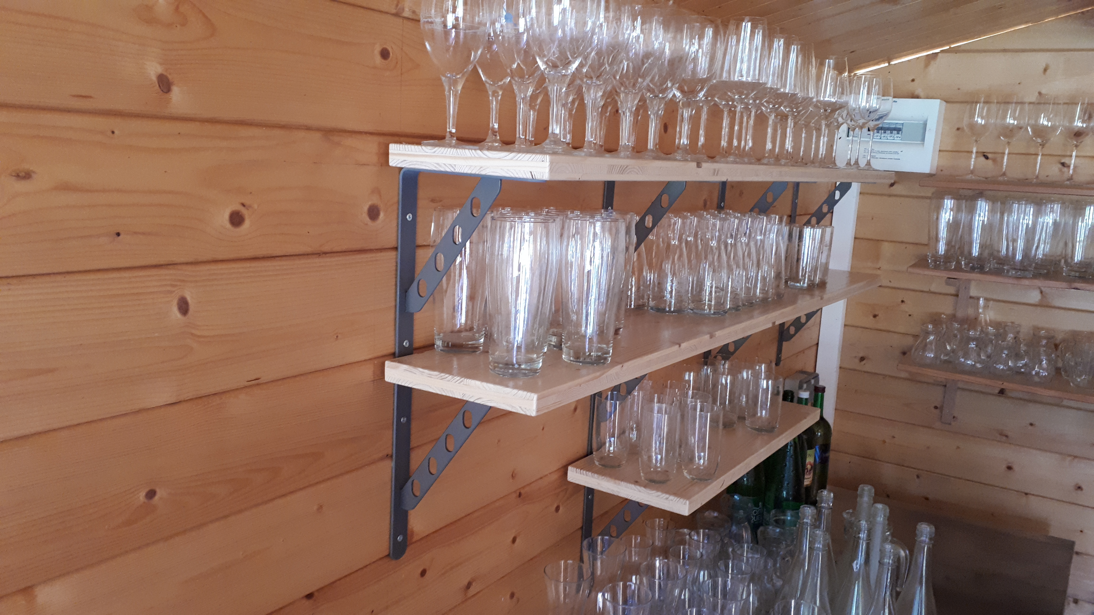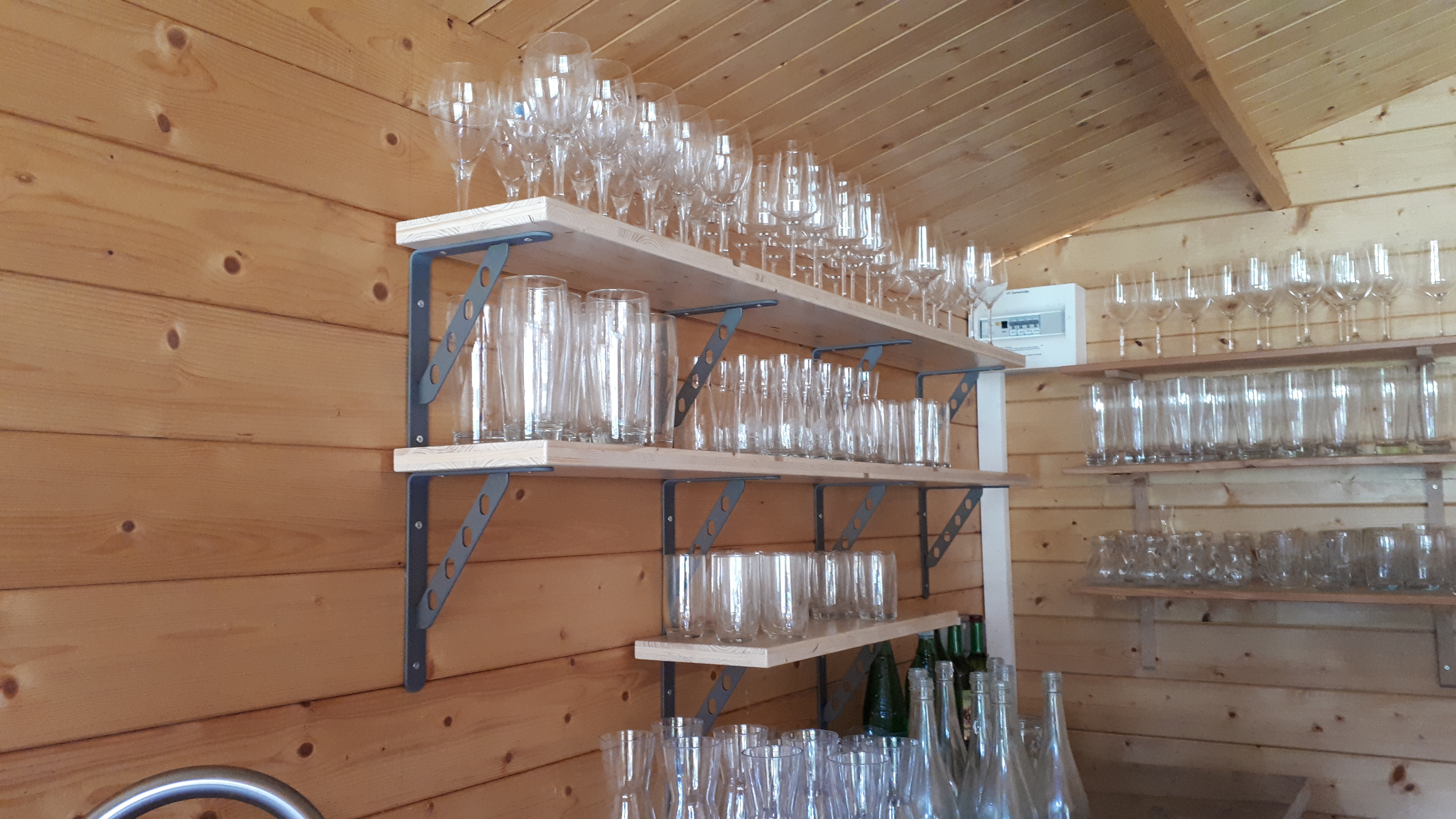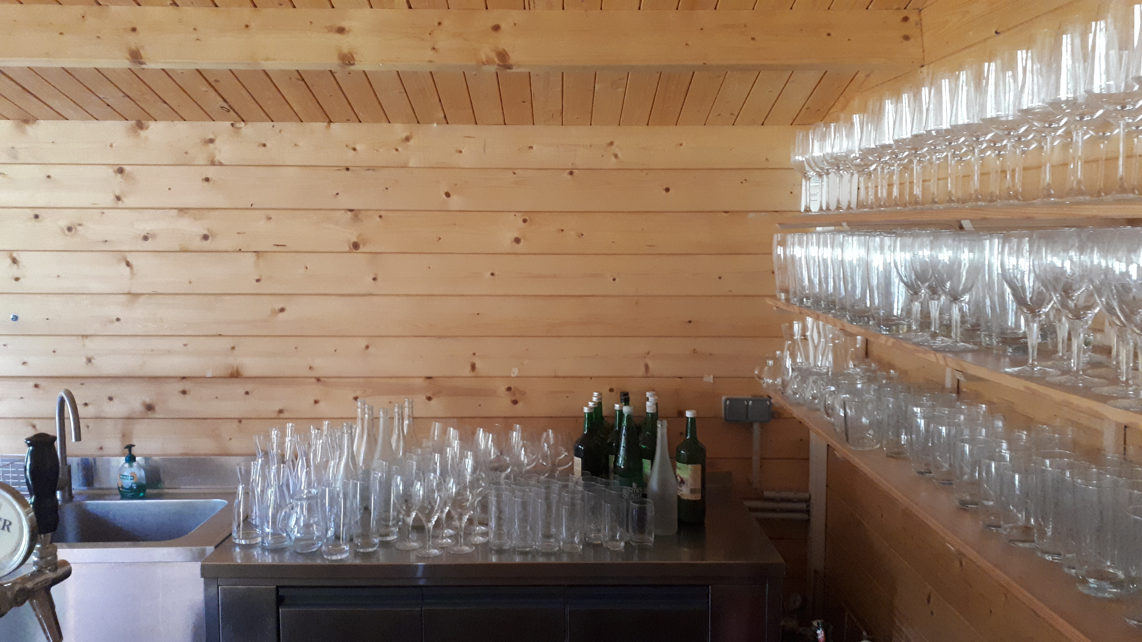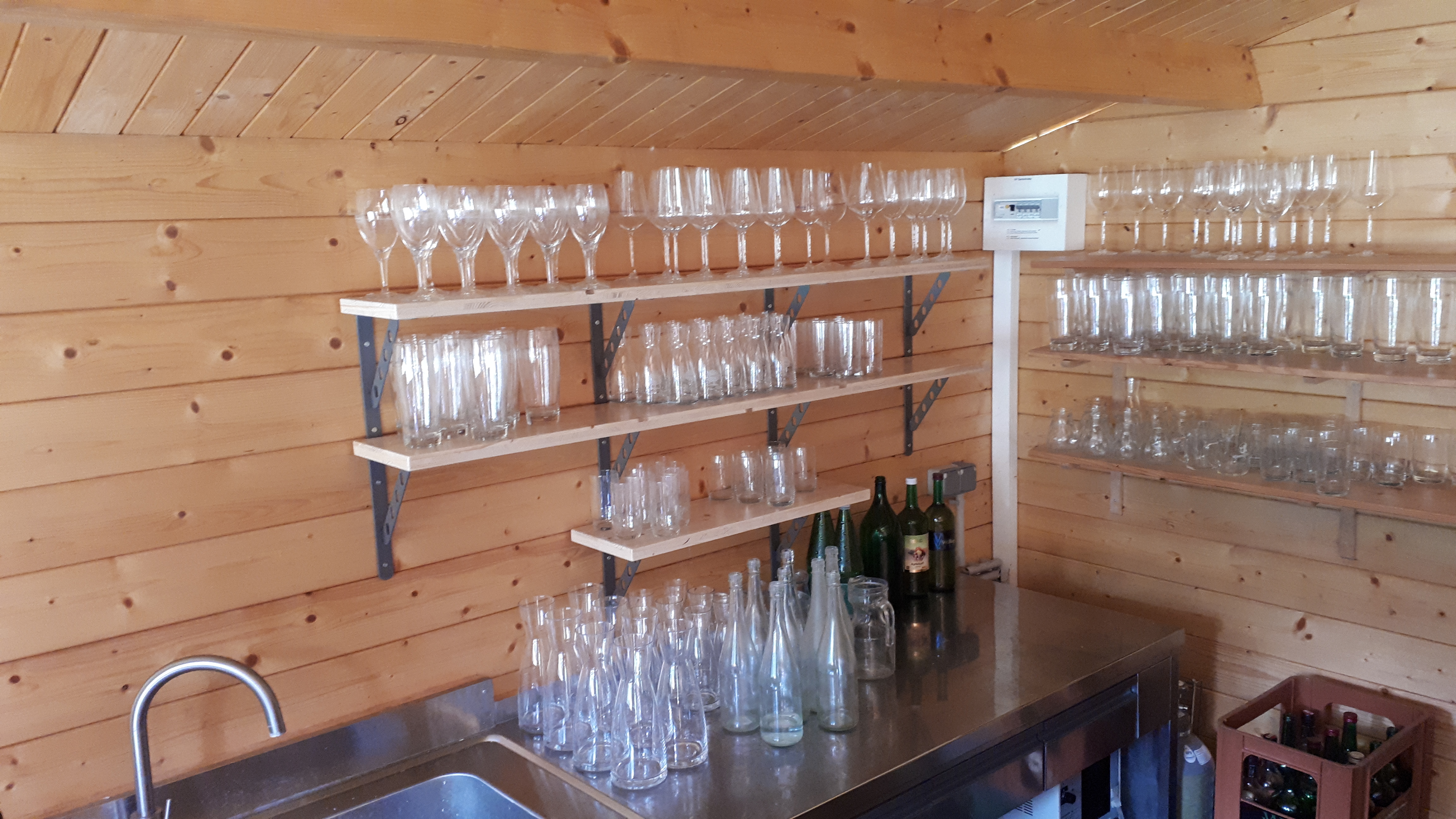 Für unterschiedliche Gläsertypen (Gastronomie) für eine Holzhütte mit Schankanlage und Schankeinrichtung (Sommerschank).