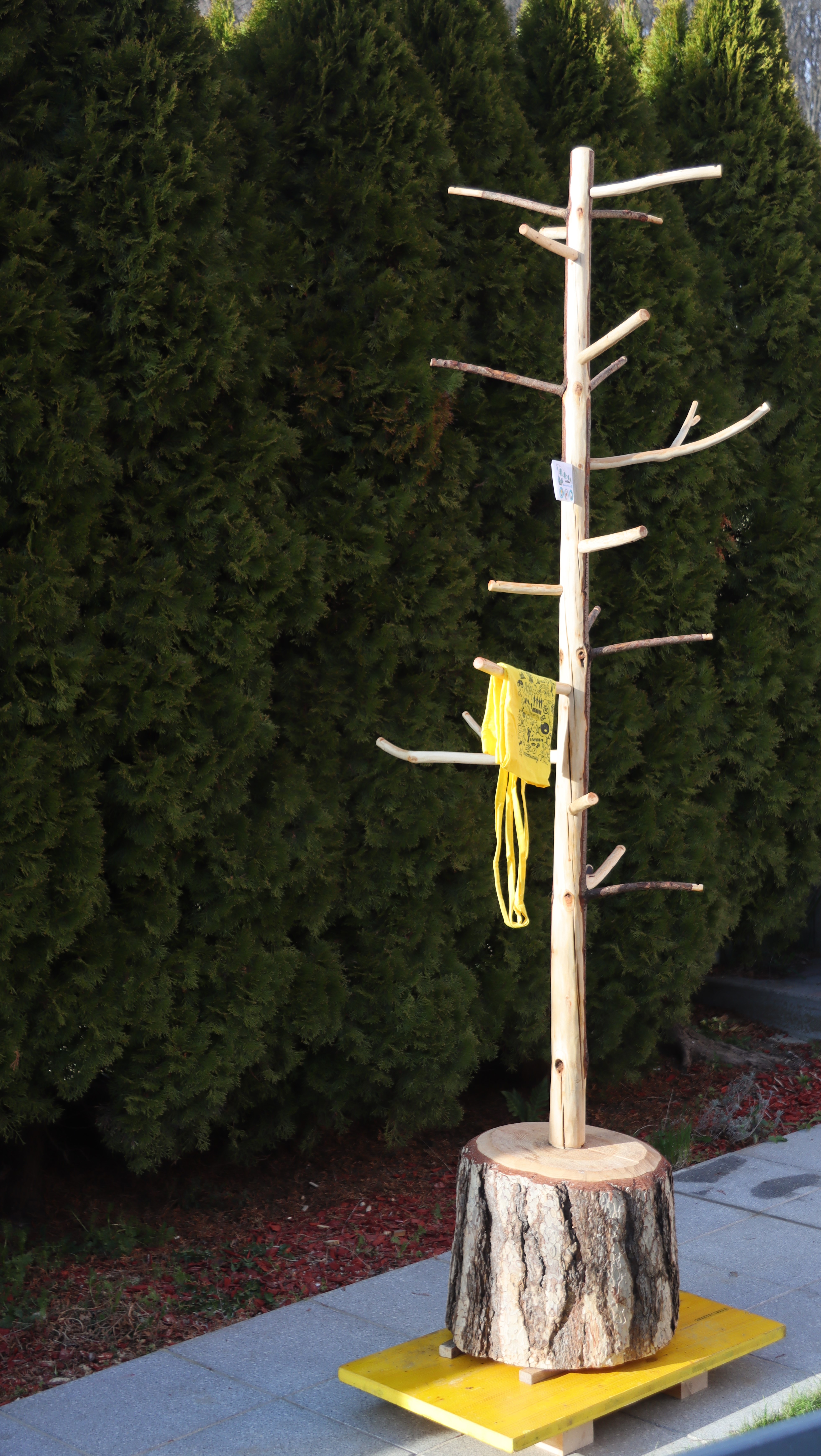 Auch Dekoelemente, Schlüssel, Hüte, Mützen, Schals, Handschuhe, Handtücher, Baumwolltaschen finden einen geeigneten Ast. Am Bodenbaumstück können kleine Körbe, Taschen und Rucksäcke abgestellt werden.