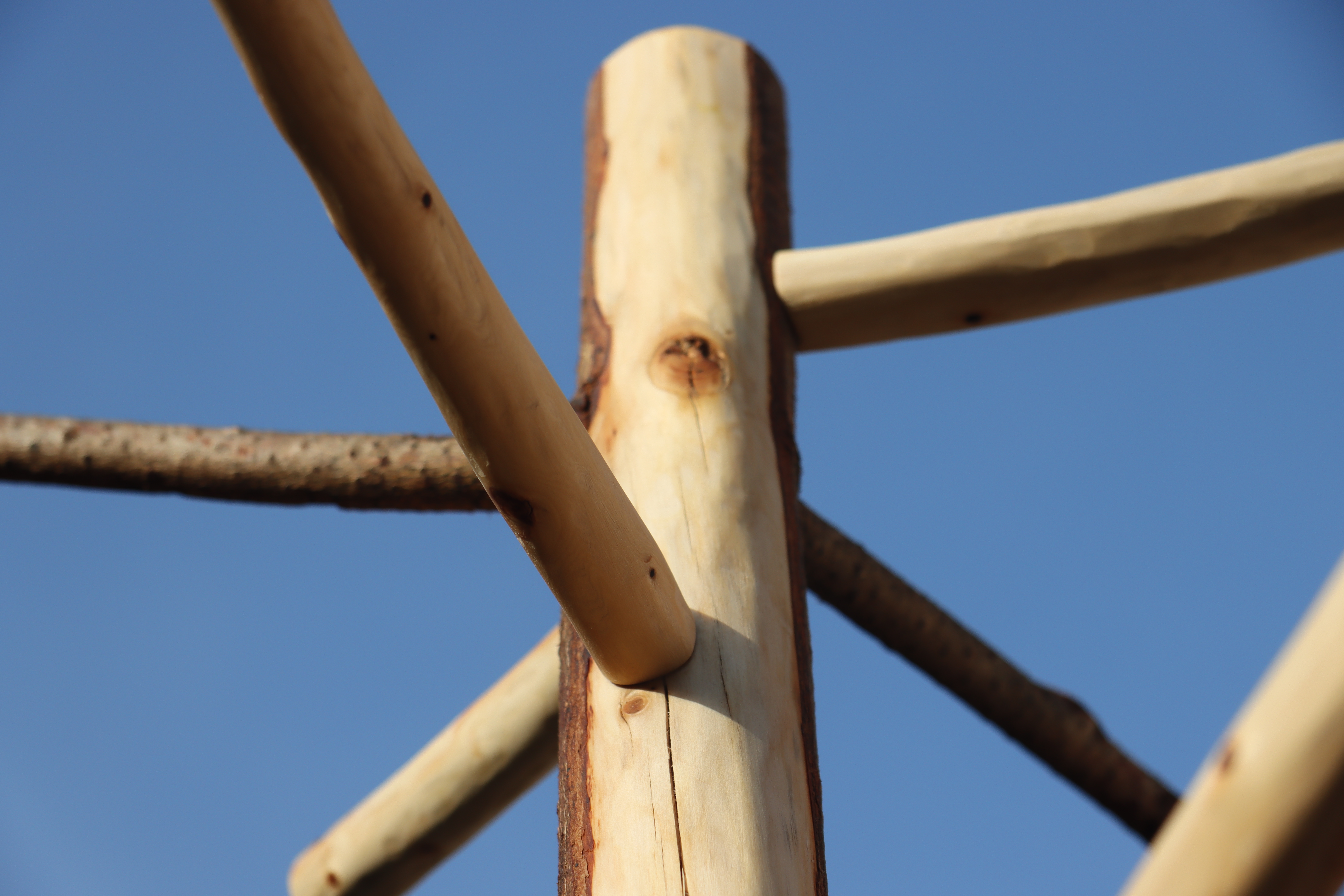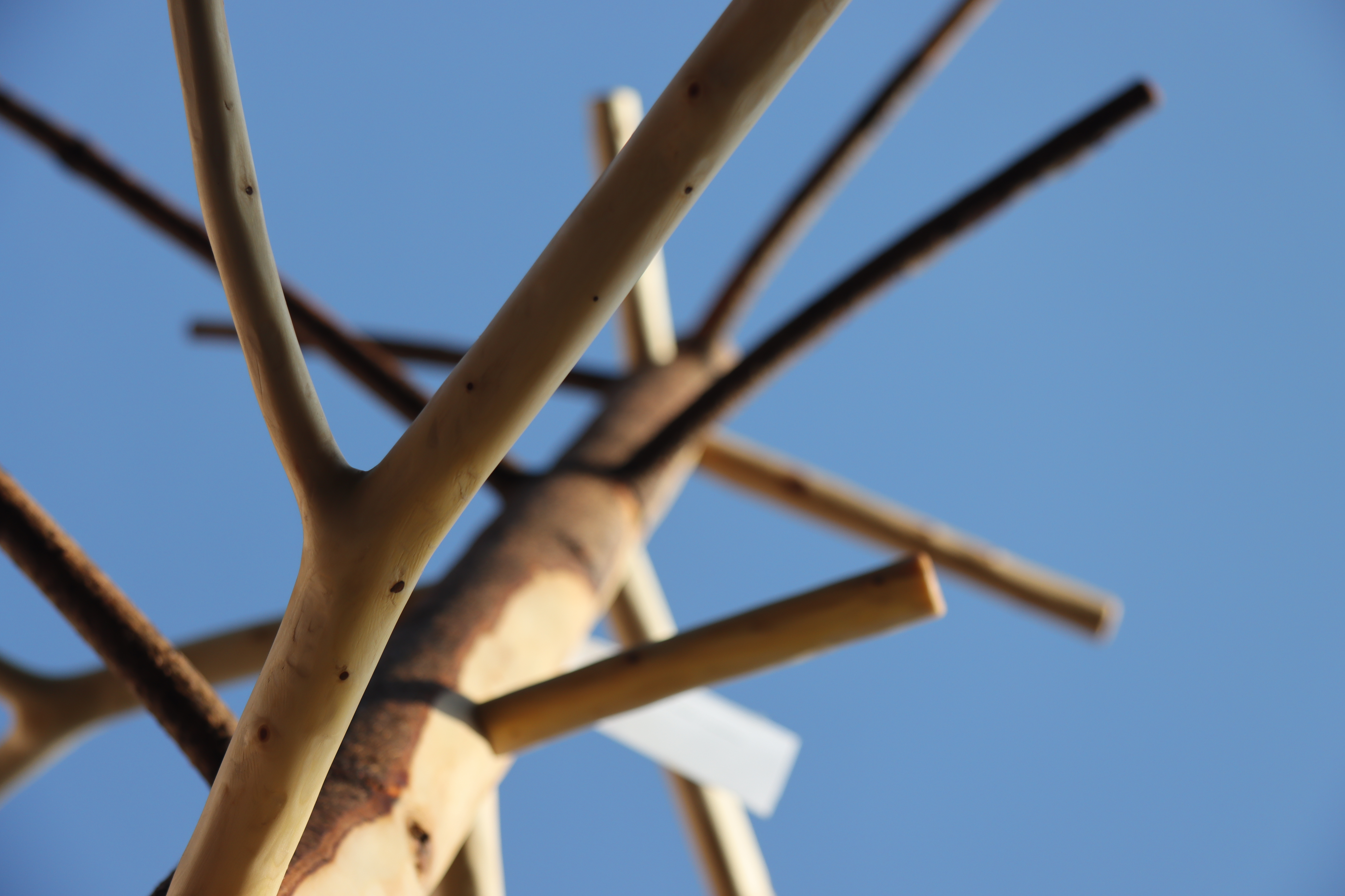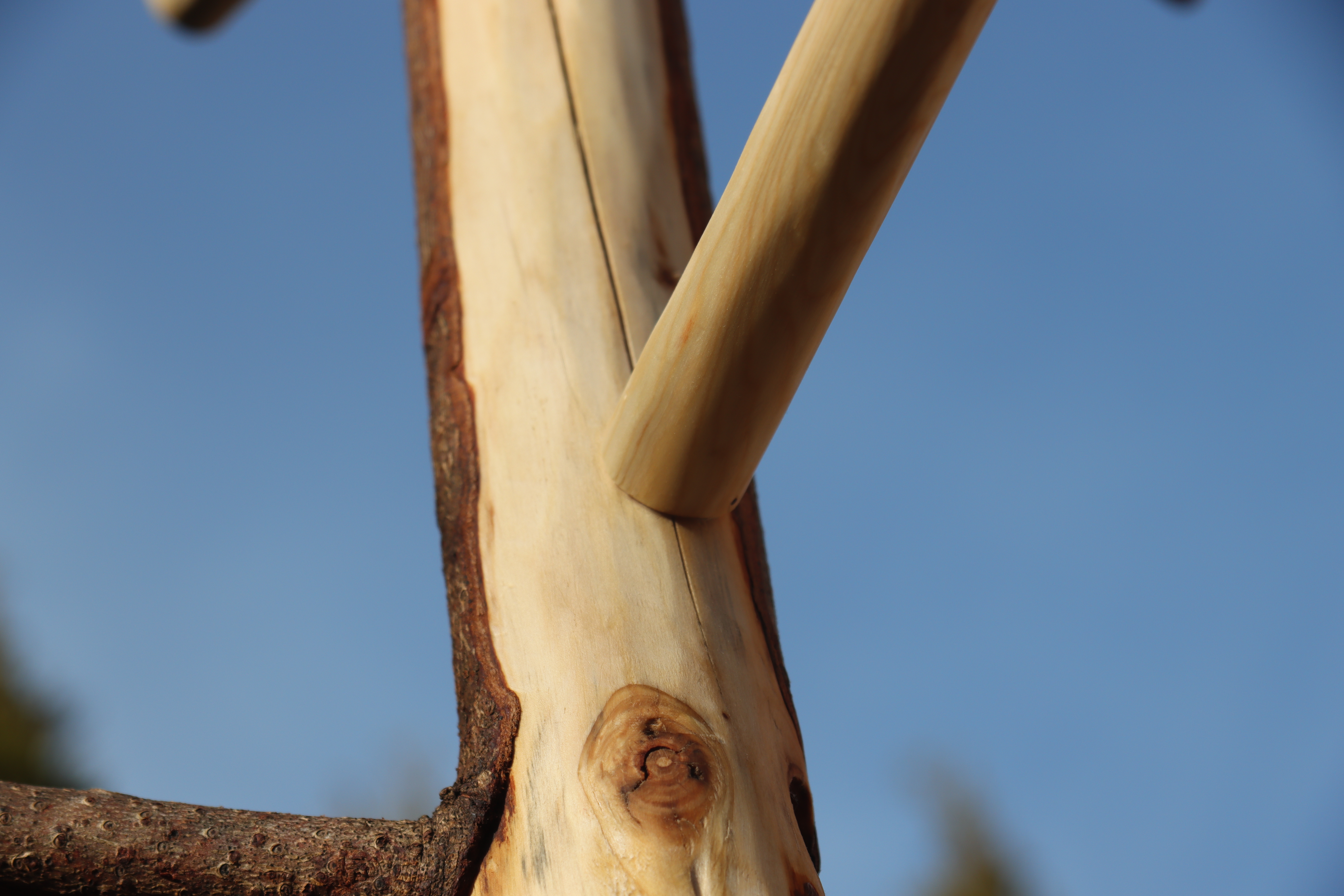 Ausführung: Stamm und Aststücke - individuell angepasst, unterschiedliche Anordnung. Angeschlagen ist der Baumwipfel in einem Baumstück (lösbare Verbindung).